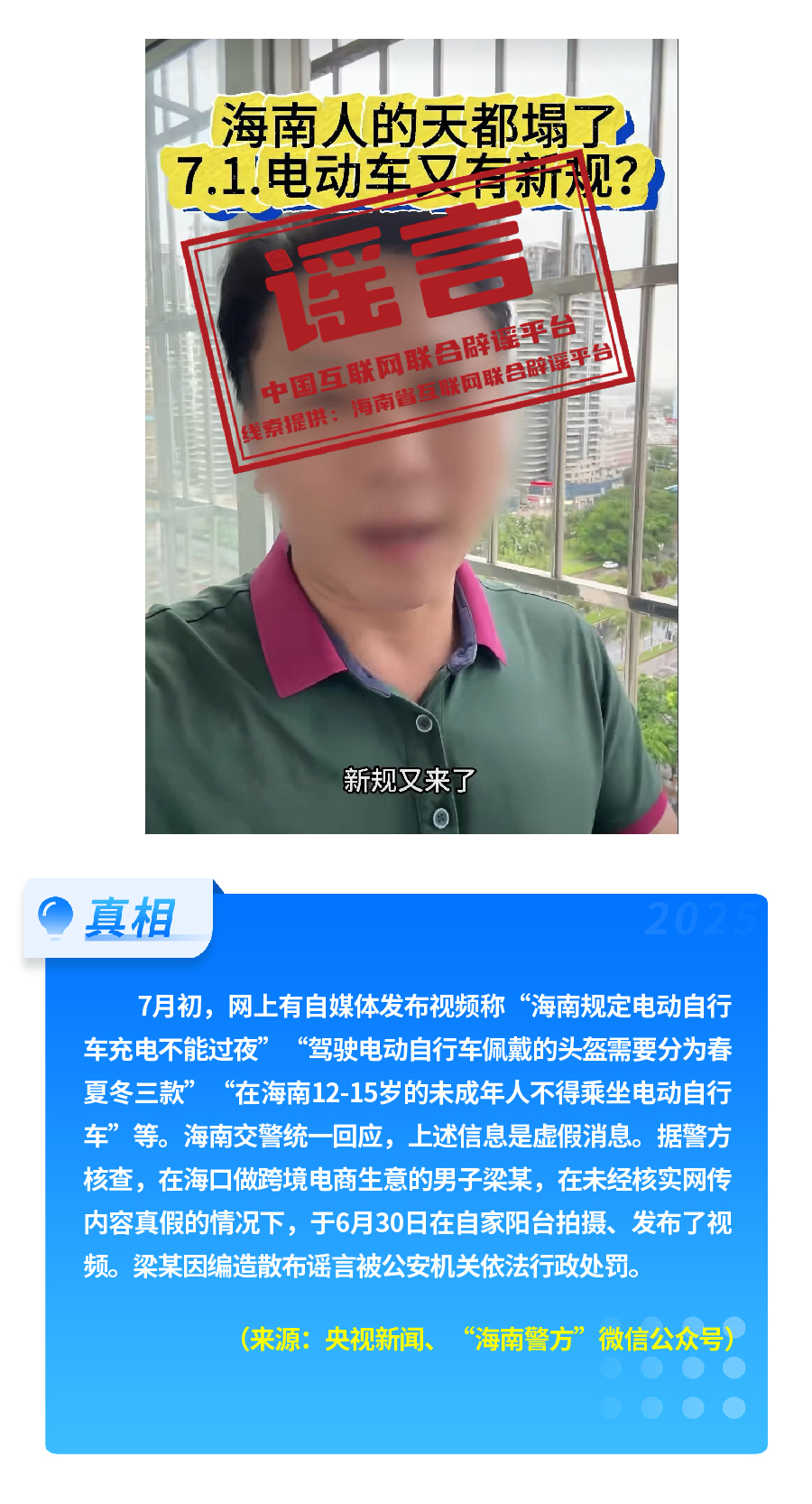 有人重新翻炒“醫(yī)?!畟€(gè)人賬戶’將全部取消”舊謠,故意歪曲醫(yī)保改革真實(shí)內(nèi)涵,嚴(yán)重誤導(dǎo)公眾對(duì)醫(yī)保改革政策的理解。“有專人上門服務(wù)激活醫(yī)保碼”,披著“公共服務(wù)”的外衣,實(shí)有詐騙之嫌和安全風(fēng)險(xiǎn)。憑空捏造“海南規(guī)定電動(dòng)自行車充電不能過(guò)夜、頭盔分三季”這一“奇葩規(guī)定”,以“新規(guī)”話術(shù),擾亂交通管理秩序。