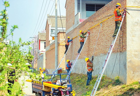 四月八日,施工人員在運城市鹽湖區(qū)上郭鄉(xiāng)中陳莊村架設(shè)天然氣管道。該區(qū)大力推進(jìn)清潔能源建設(shè)推廣步伐,加快“煤改氣”“煤改電”重點民生項目工程建設(shè),對農(nóng)村現(xiàn)有住宅進(jìn)行節(jié)能改造,提高保溫隔熱效能。(任志堅攝)