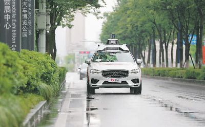 6月27日,上海啟動(dòng)智能網(wǎng)聯(lián)汽車規(guī)模化示范應(yīng)用,一輛智能網(wǎng)聯(lián)汽車在路上行駛。