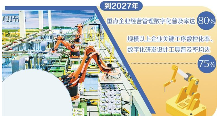 工業(yè)和信息化部等7部門(mén)日前印發(fā)《食品工業(yè)數(shù)字化轉(zhuǎn)型實(shí)施方案》(以下簡(jiǎn)稱《實(shí)施方案》)提出,到2027年,重點(diǎn)企業(yè)經(jīng)營(yíng)管理數(shù)字化普及率達(dá)80%,規(guī)模以上企業(yè)關(guān)鍵工序數(shù)控化率、數(shù)字化研發(fā)設(shè)計(jì)工具普及率均達(dá)到75%,打造百個(gè)數(shù)字化轉(zhuǎn)型典型應(yīng)用場(chǎng)景,梯次實(shí)施千個(gè)數(shù)字化示范(試點(diǎn))項(xiàng)目。