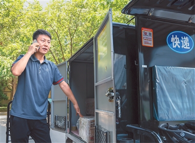 700專用號碼啟用后可方便消費者識別、提升快遞員、外賣員配送效率。在網(wǎng)約車行業(yè)推廣后,700專用號碼還將助力乘客精準(zhǔn)識別駕駛員來電,讓駕駛員接單更順暢,減少停車?yán)@行。圖為6月29日,陜西省西安市的一位快遞員正用手機(jī)聯(lián)系顧客,準(zhǔn)備派送快件。新華社記者 毛思倩攝