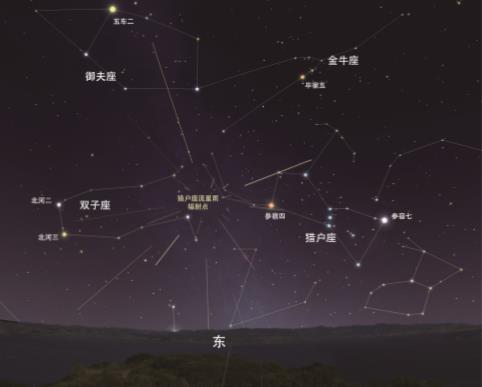 獵戶座流星雨輻射點(diǎn)及其周邊星座示意圖。(北京天文館供圖)