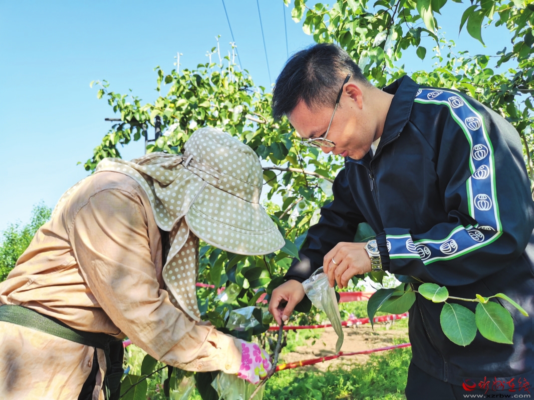 劉慧存為梨樹套袋