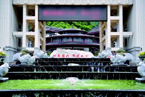 但校園內比較顯眼的是一些與教學無關的設施:從氣派的仿古牌坊式大門進入校園,4層噴泉水景沿步道拾級而上,16尊石刻鯉魚分布兩側,一方約8米長、1.5米高的校訓大理石碑位于噴泉盡頭。據學校工作人員介紹,該水景取“鯉魚跳龍門”之意,從西安拉來的校訓石碑就花費了五六萬元。