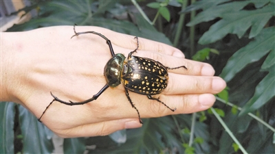 “這種甲蟲的發(fā)現(xiàn)地都是生態(tài)環(huán)境很好的茂密叢林,它的出現(xiàn)可以看做是自然環(huán)境保護(hù)得當(dāng)?shù)囊粋€標(biāo)志。”趙力說,體形對比之下,格彩臂金龜?shù)捏w形比陽彩臂金龜要小一些。陽彩臂金龜一般的體長可以達(dá)到7厘米,而格彩臂金龜?shù)捏w長只有5厘米多。