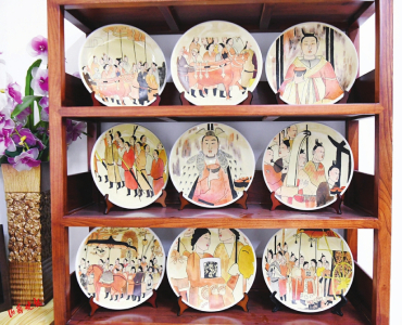 采訪中,提起刻鑿的過程,苗振潔一邊端著自己的瓷盤作品,一邊用手輕撫著那些畫面,就像一位老母親,用慈愛的雙手輕輕摸著孩子的頭,這種回憶,痛并快樂著。苗振潔說:“刻鑿前,構(gòu)思一定要成熟,比如瓷盤里要呈現(xiàn)哪個壁畫上的內(nèi)容,虛實之間要重點打造什么圖像,這9幅作品還要彼此關(guān)照、前后呼應(yīng)。等你構(gòu)思好后,還要先畫線稿,又要不斷修改思路,直到滿意為止。第三步,就是刻鑿了,這個過程就像‘修煉’一樣,創(chuàng)作者必須全神貫注一心一意。”大概有半年的時間,苗振潔就像閉關(guān)一樣,只要起錘那一刻,就要隔絕和外界的一切聯(lián)系。