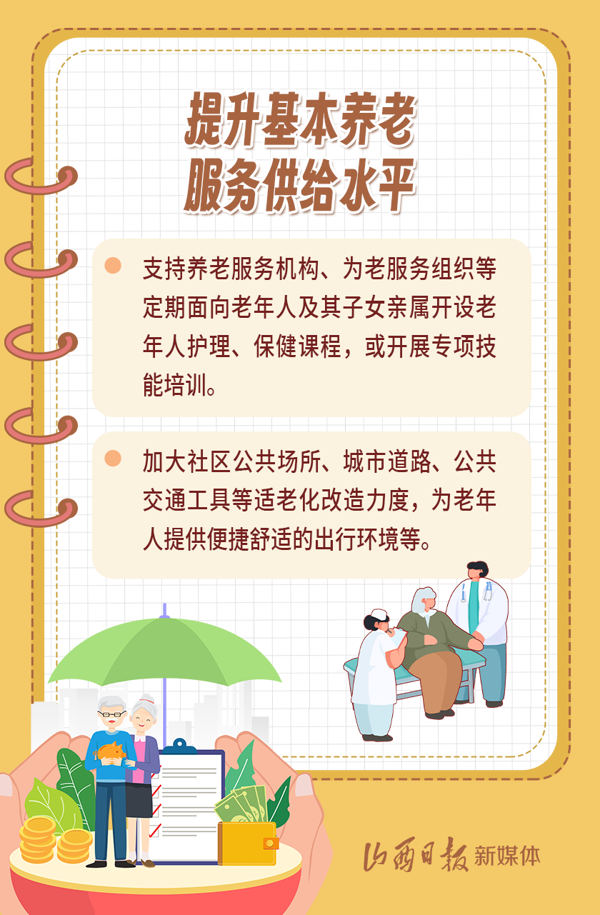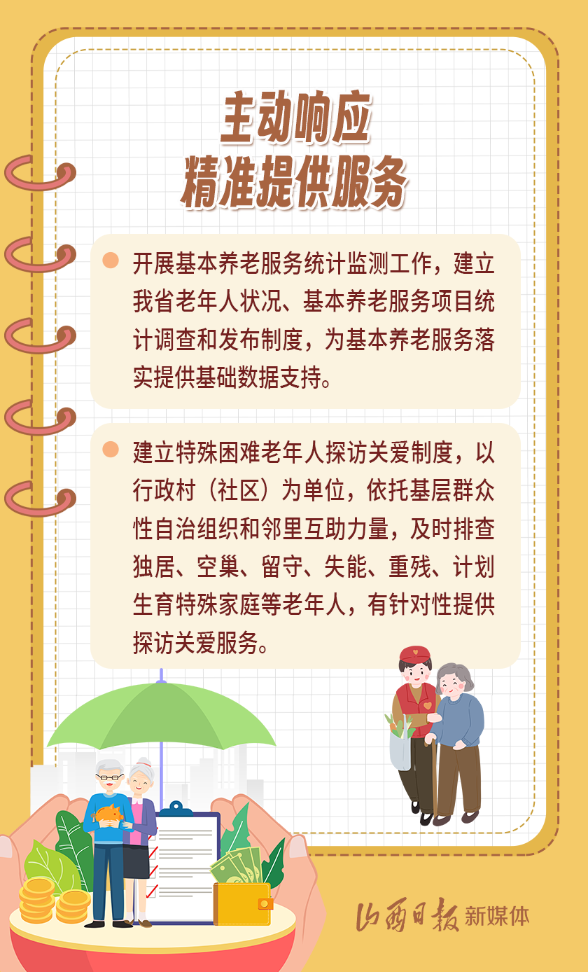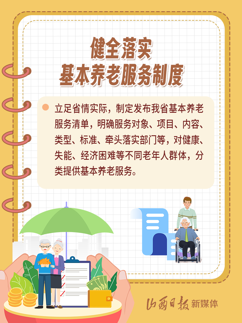 近日,我省出臺(tái)《山西省基本養(yǎng)老服務(wù)體系建設(shè)實(shí)施方案》,以積極應(yīng)對(duì)全省人口老齡化,扎實(shí)推進(jìn)基本養(yǎng)老服務(wù)體系建設(shè),切實(shí)提高基本養(yǎng)老服務(wù)的公平性、可及性,不斷增強(qiáng)老年人的獲得感、幸福感、安全感。