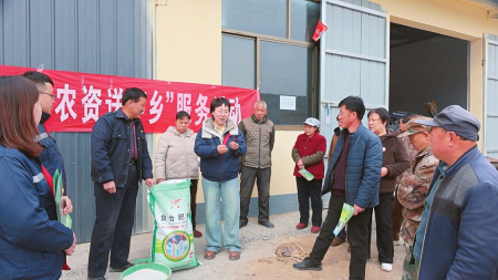 站在自家地頭,巖井村村民李金平滿臉都是笑意:“現(xiàn)在農(nóng)資服務(wù)越來(lái)越好了,化肥能及時(shí)送到我們手中?!彼贿叞嶂?,一邊向記者介紹,“去年就是用的這個(gè)化肥,效果特別好,今年我還來(lái)買,準(zhǔn)備春播時(shí)用。”
