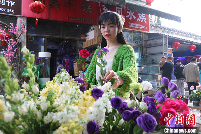 3月23日,安徽省合肥市裕豐花鳥魚蟲市場,“Z世代”女孩詹銀銀正在挑選鮮花,準備擺攤銷售。隨著氣溫回升,鮮花市場迎來一波熱度。記者近日在采訪中了解到,中國年輕人正在通過各種鮮花消費場景把春天“帶回家”,鮮花消費已突破固有的節(jié)日專屬儀式感,成為年輕人日常“悅己”的重要方式。中新社記者 張強 攝