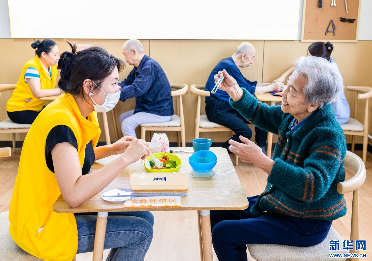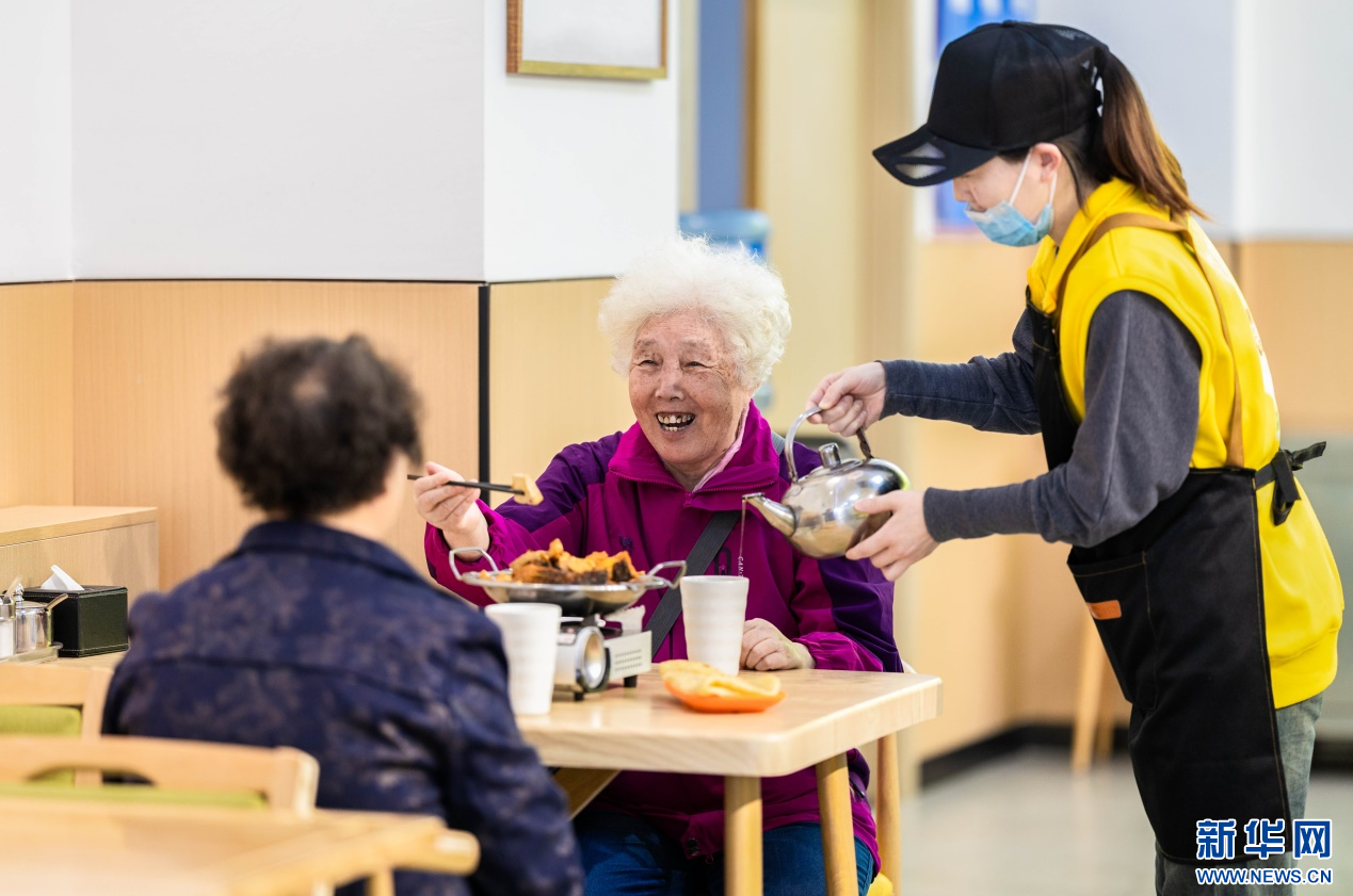 4月8日,老人在呼和浩特市玉泉區(qū)居家社區(qū)養(yǎng)老服務(wù)標準化示范中心“為老餐廳”內(nèi)用餐。新華網(wǎng)發(fā)(丁根厚 攝)