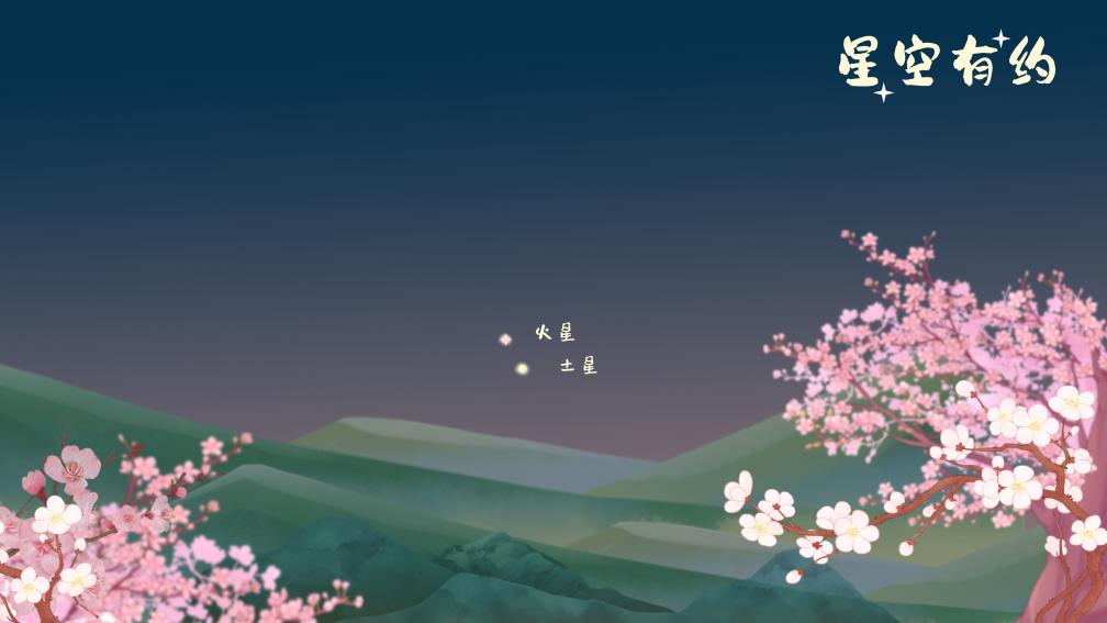 進(jìn)入4月,火星與土星在黎明前的低空越靠越近,11日最近,二者之間的角距離近乎1個滿月視直徑大小。日出前,火星與土星攜手出現(xiàn)在東南方,但地平高度有些低,可觀測時間不足1小時。
