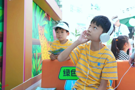 “有啄木鳥、有青蛙,剩下的我聽不出來……”在“萬物有聲”游戲環(huán)節(jié),小朋友認(rèn)真地和環(huán)保志愿者說。在這個(gè)環(huán)節(jié),參與者佩戴耳機(jī)后,可以根據(jù)聽到的聲音猜動(dòng)物的名稱。各種動(dòng)物的聲音,著實(shí)吸引了不少小朋友的參與,有的小朋友還模仿發(fā)出聲音的動(dòng)物形象,惟妙惟肖,讓現(xiàn)場(chǎng)不少人笑出聲來。