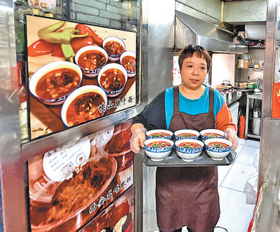 正值中午用餐高峰,程亞娟(見圖)在廚房和前廳間來回穿梭,額頭上掛滿汗珠。