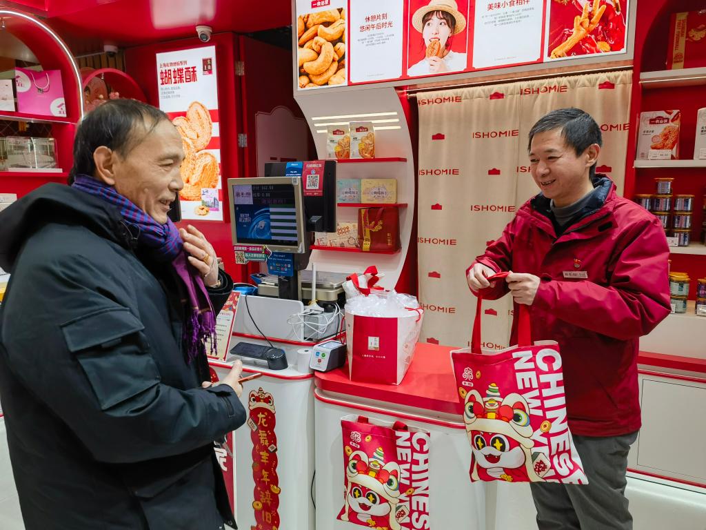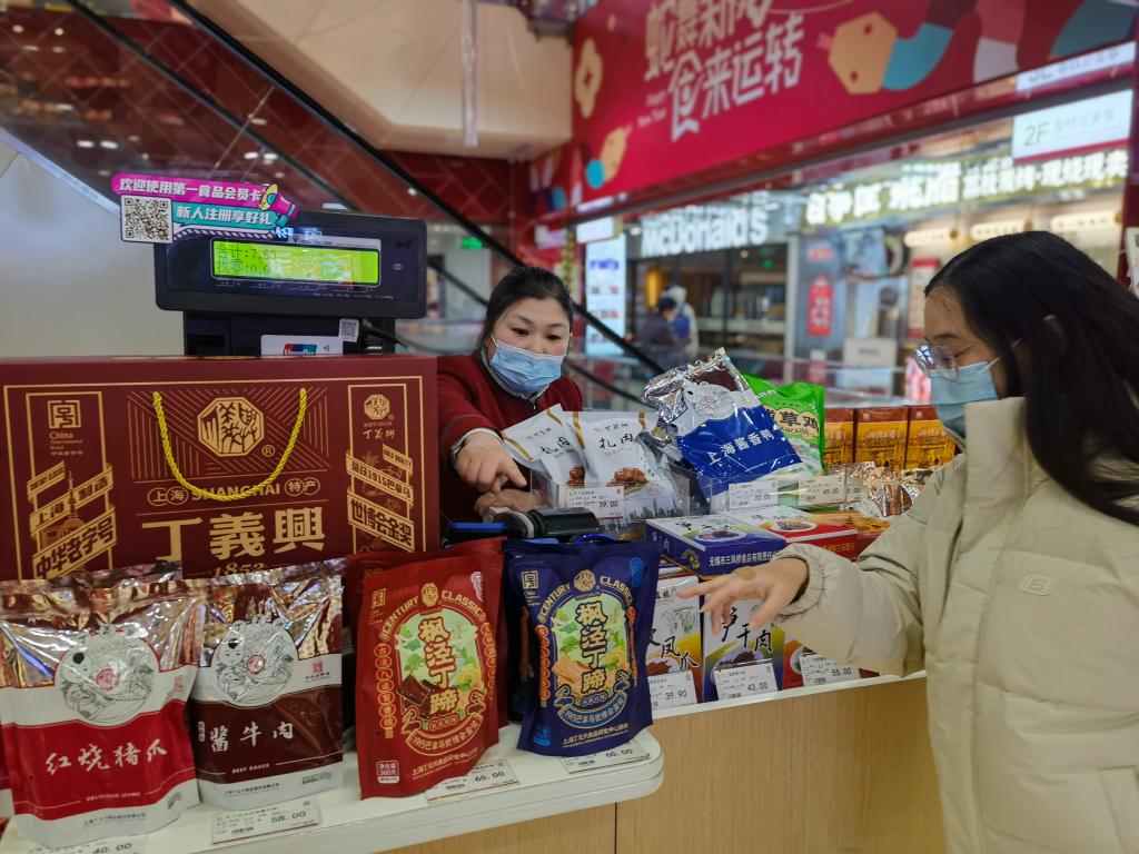 新華社上海1月20日電(記者陳愛平)走進(jìn)位于南京路步行街的第一食品商店,喜慶紅火的新春裝飾、琳瑯滿目的非遺美食、排隊精挑細(xì)選年貨的顧客、笑著稱重裝袋的售貨員……過年的幸福感在掀開擋風(fēng)門簾瞬間“拉滿”。