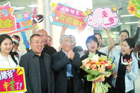 在接站口,“姥爺”接過記者遞上的鮮花,看到刊載報(bào)道他的4月2日的報(bào)紙,咧嘴一笑,一再說“謝謝,謝謝”,記者用鏡頭和文字記錄下這份喜悅。交城縣委宣傳部也派出了接機(jī)小分隊(duì),打著“我們愛你,山西姥爺”等歡迎牌,把姥爺護(hù)送回家。