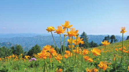毛茛科金蓮花屬多年生草本植物,有“旱地蓮”“金芙蓉”之稱。不僅具有極高觀賞價(jià)值,還可入藥。每年盛夏,駝梁等地的金蓮花連片綻放,是五臺山標(biāo)志性生態(tài)景觀。