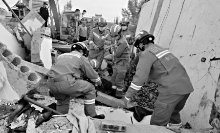 由于路途遙遠,3時30分,先期救援力量2車8人到達事故現(xiàn)場。經(jīng)現(xiàn)場偵查和詢問知情人得知:坍塌房屋為一棟磚木結(jié)構(gòu),房頂為預制板,房屋坍塌現(xiàn)場一片狼藉,面積約50平方米的空間內(nèi),土塊、瓦礫、預制板、家具雜亂無章。3人被埋在廢墟下,且房屋的墻體發(fā)生大角度傾斜并伴有多處裂縫,隨時都有再次倒塌的危險。由于現(xiàn)場作業(yè)面有限,不能使用機械設備,廢墟下面還有被埋人員,救援動作不能太大,給消防救援帶來很大困難。