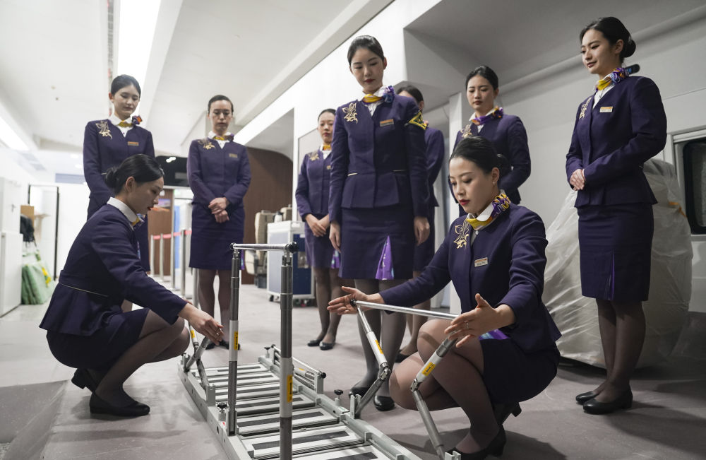 1月10日,鐵路上海客運(yùn)段高鐵一車(chē)隊(duì)乘務(wù)人員在列車(chē)模擬艙內(nèi)開(kāi)展應(yīng)急演練培訓(xùn)。新華社發(fā)(程志兵攝)