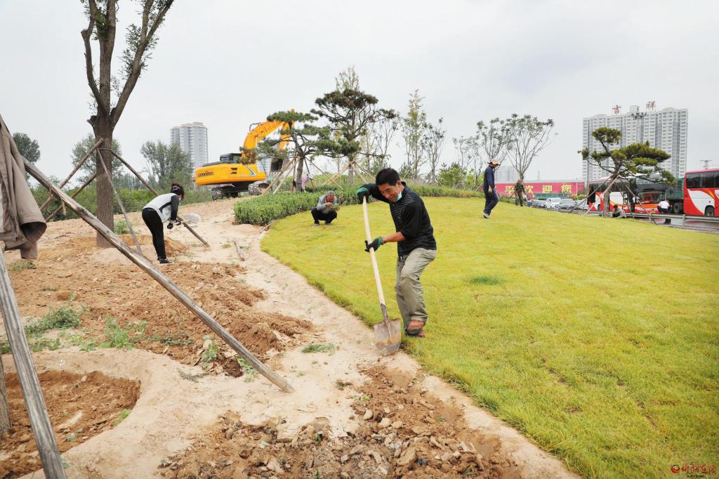 9月14日,原平市高速路口兩側(cè)的綠化工作正在如火如荼地進(jìn)行著。挖掘機揮舞著鐵臂挖掘土壤,數(shù)十名工人忙碌著搬運花草,栽植樹木。據(jù)了解,該市今年綠化工程總投資1.3億元,對范亭廣場、原平經(jīng)濟技術(shù)開發(fā)區(qū)、高速路口兩側(cè)及新華廣場、崞紅線進(jìn)行綠化提升改造,喬、灌、花、草合理組配,達(dá)到增層、增色、增花的效果。(褚 震 攝)