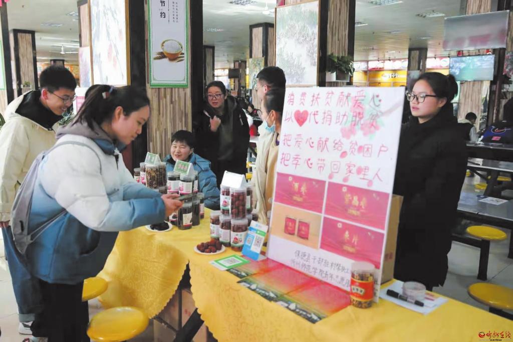 “以購代捐”活動改變了以往的捐贈模式,讓定點幫扶村的產(chǎn)品變成了商品,有效解決了農(nóng)產(chǎn)品銷路問題,既激發(fā)了農(nóng)民群眾努力生產(chǎn)、勤勞致富的積極性,又拉近了廣大師生與農(nóng)民的距離,形成了“我勤勞、我致富”“我參與、我幸?!钡牧己梅諊?(武大力)