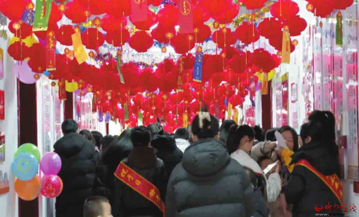 活動(dòng)現(xiàn)場張燈結(jié)彩,一條條燈謎在紅彤彤的燈籠下輕輕搖曳,內(nèi)容涵蓋漢字謎題、成語典故、民俗常識(shí)等多個(gè)領(lǐng)域,兼具知識(shí)性與趣味性。男女老少聞?dòng)嵍鴣?,或?dú)自站在謎面下沉思,或與家人朋友圍在一起熱烈討論,每當(dāng)有人成功破解謎題,周圍便投來贊賞的目光。成功猜中燈謎的群眾,還能領(lǐng)取到精心準(zhǔn)備的禮品,融融暖意與歡聲笑語交織,將節(jié)日氛圍推向高潮。