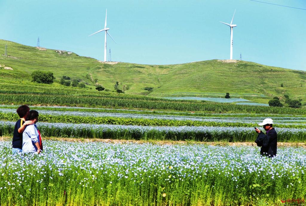近年來,神池縣加大對胡麻種植戶的補(bǔ)貼力度,每畝補(bǔ)貼260元,在胡麻品質(zhì)最優(yōu)的烈堡鄉(xiāng)種植1.6萬畝,打造了970畝有機(jī)旱作胡麻種植示范基地。每年6月下旬至7月下旬,烈堡鄉(xiāng)解家?guī)X到長城寨沿線的胡麻花盛開,藍(lán)色花海與沿線的長城交相輝映,組成一幅動人的美景畫。烈堡鄉(xiāng)鄉(xiāng)長趙崢嶸介紹,當(dāng)?shù)卣谔剿鳜F(xiàn)代農(nóng)業(yè)發(fā)展新路徑,通過“胡麻產(chǎn)業(yè)+旅游”的方式,吸引更多游客,使胡麻成為帶動鄉(xiāng)村振興的重要引擎。