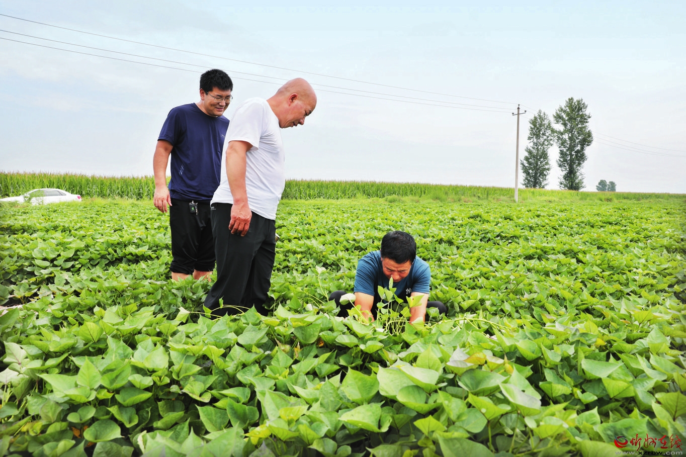頭戴一頂舊草帽、一雙鞋上沾滿了泥。7月28日,山西農(nóng)業(yè)大學(xué)玉米研究所研究員張紅梅頂烈日、冒酷暑,蹲在忻府區(qū)董村鎮(zhèn)劉家山村種薯生產(chǎn)基地,觀察紅薯葉片,判斷種薯生長(zhǎng)情況。