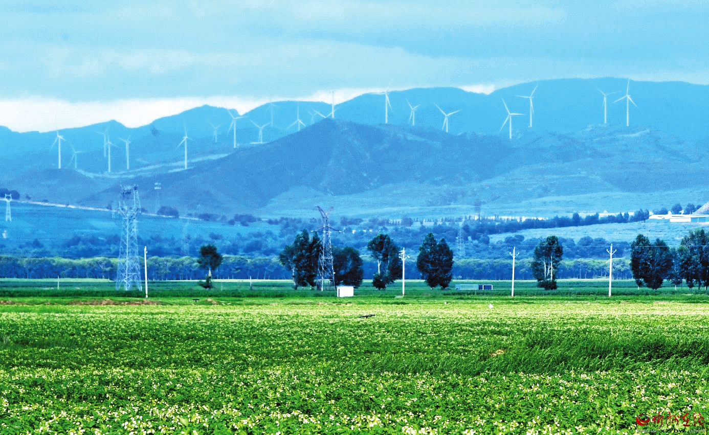 7月15日,五寨縣青楊嶺風力發(fā)電場,一臺臺風力發(fā)電機矗立在群山之巔,不斷地生產(chǎn)和輸送清潔能源。 本報記者 劉紀森攝