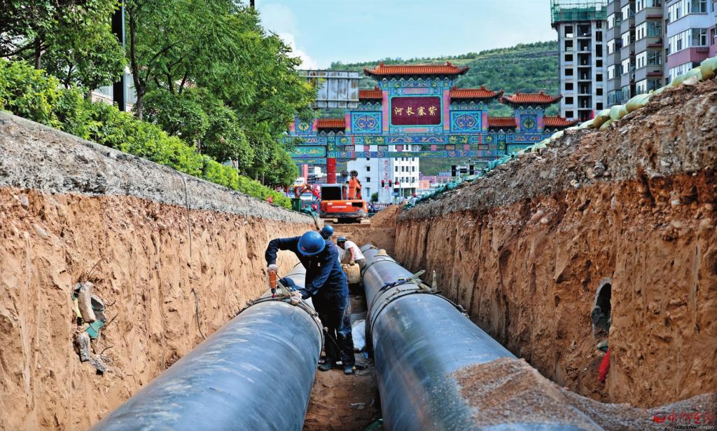 縣城主干道管網(wǎng)鋪設(shè)施工現(xiàn)場。 本報(bào)記者張存良攝
