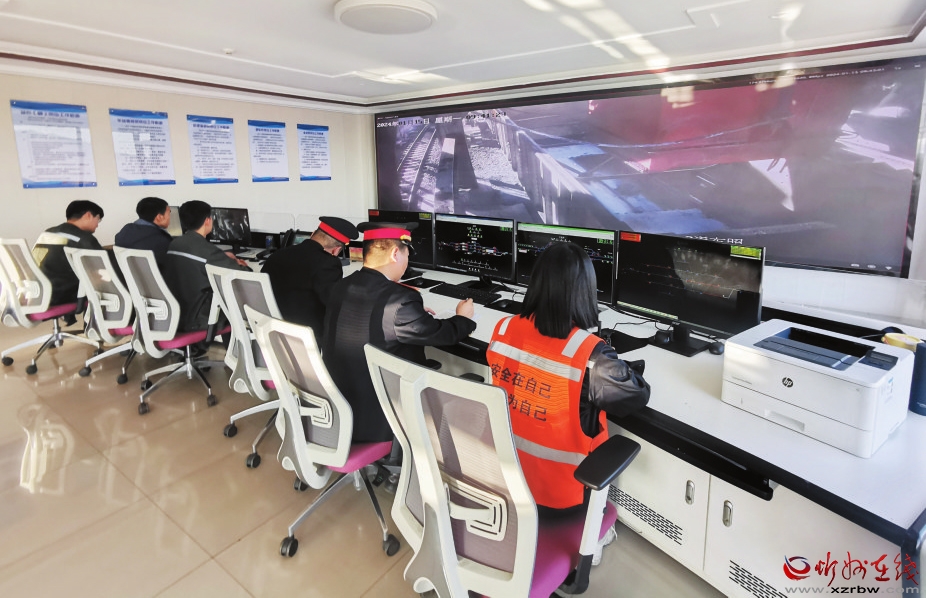 寧武雙萬噸環(huán)保煤炭物流園調度室內,工作人員正在緊張工作。
