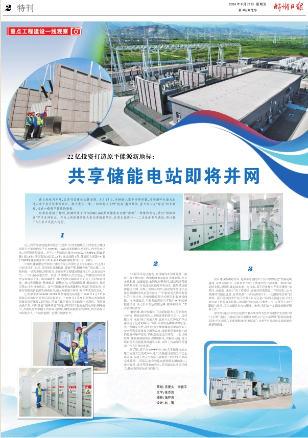 記者在現(xiàn)場了解到,新建的原平市500MW/1GWh共享儲能電站像“海綿”一樣蓄積電力,通過“削峰填谷”守衛(wèi)電網(wǎng)安全。作為山西在建的最大電化學儲能項目,目前正在進行一、二次設備電氣調試,預計將于8月底正式投入運行。