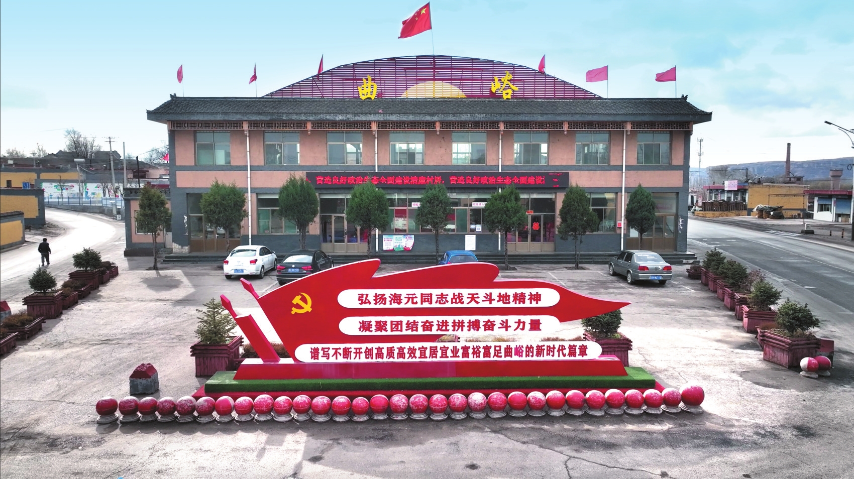微風(fēng)拂過(guò)層層梯田,從歷史走來(lái)的紀(jì)念館與新時(shí)代的村黨支部辦公樓隔空相對(duì),中間廣場(chǎng)上飄揚(yáng)的紅旗獵獵作響。這面旗幟見(jiàn)證了一場(chǎng)跨越時(shí)空的接力,也傳頌著永不褪色的傳奇——信念如何種進(jìn)黃土,長(zhǎng)出希望。