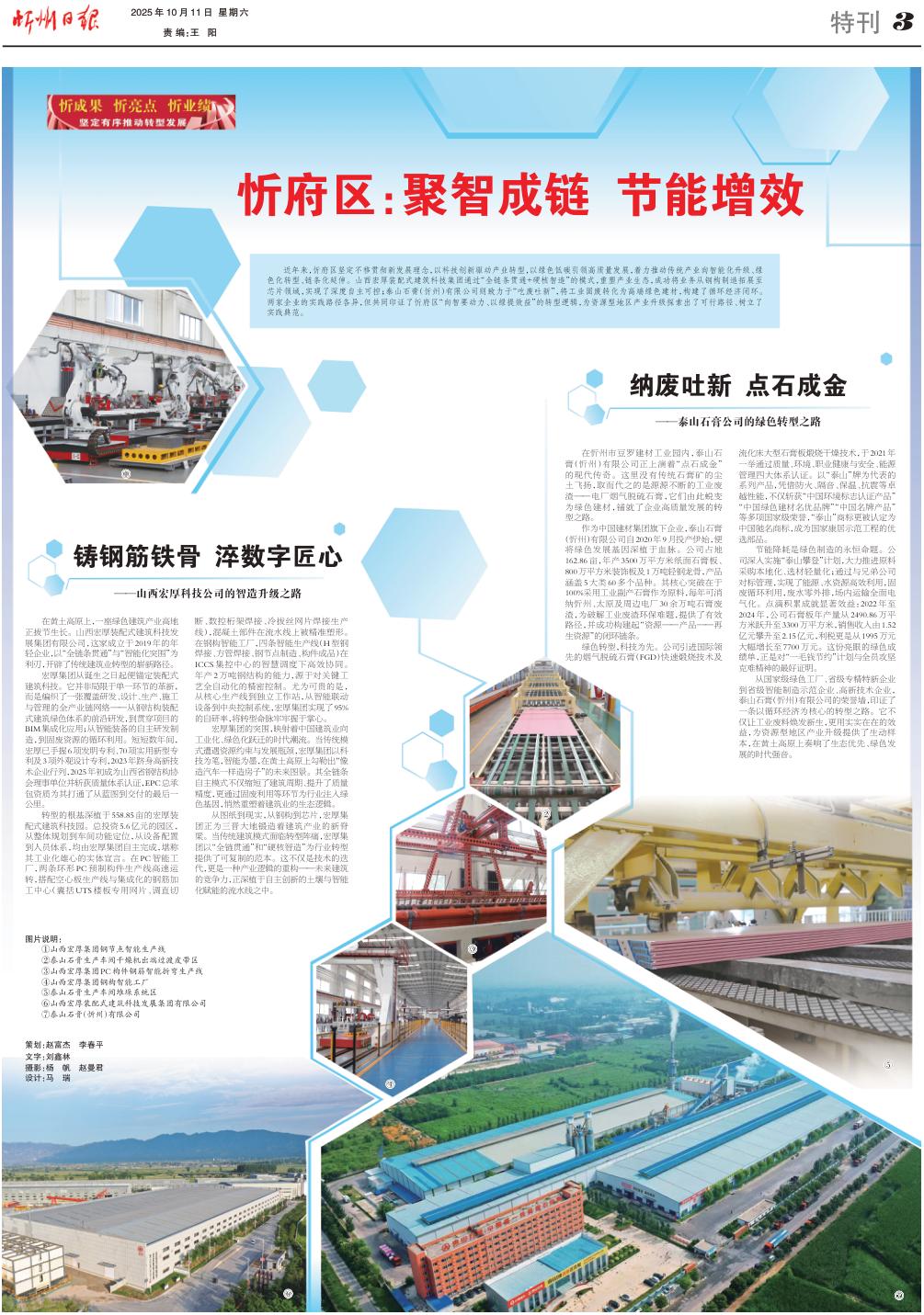 近年來(lái),忻府區(qū)堅(jiān)定不移貫徹新發(fā)展理念,以科技創(chuàng)新驅(qū)動(dòng)產(chǎn)業(yè)轉(zhuǎn)型,以綠色低碳引領(lǐng)高質(zhì)量發(fā)展,著力推動(dòng)傳統(tǒng)產(chǎn)業(yè)向智能化升級(jí)、綠色化轉(zhuǎn)型、鏈條化延伸。山西宏厚裝配式建筑科技集團(tuán)通過(guò)“全鏈條貫通+硬核智造”的模式,重塑產(chǎn)業(yè)生態(tài),成功將業(yè)務(wù)從鋼構(gòu)制造拓展至芯片領(lǐng)域,實(shí)現(xiàn)了深度自主可控;泰山石膏(忻州)有限公司則致力于“吃廢吐新”,將工業(yè)固廢轉(zhuǎn)化為高端綠色建材,構(gòu)建了循環(huán)經(jīng)濟(jì)閉環(huán)。兩家企業(yè)的實(shí)踐路徑各異,但共同印證了忻府區(qū)“向智要?jiǎng)恿?、以綠提效益”的轉(zhuǎn)型邏輯,為資源型地區(qū)產(chǎn)業(yè)升級(jí)探索出了可行路徑、樹(shù)立了實(shí)踐典范。
