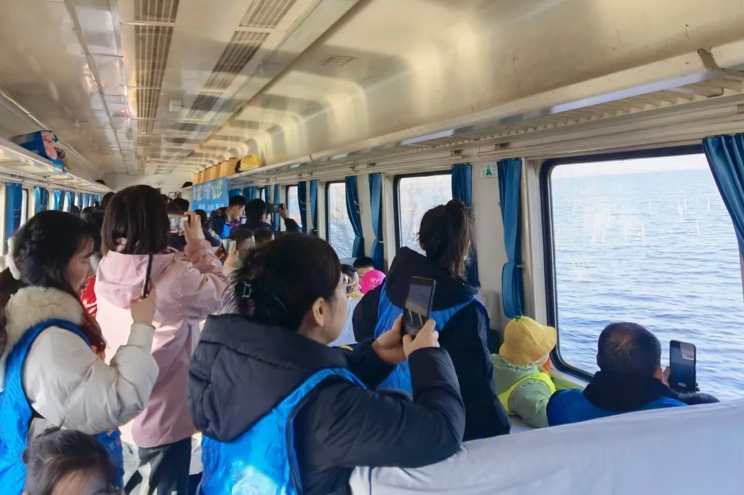 瞧,來打卡“水上列車”的旅客真不少