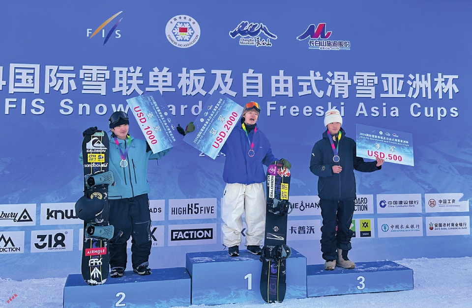 在3月4日男子單板坡面障礙技巧的比賽中,中國(guó)選手姜鑫杰憑借第一滑的83.00分收獲季軍,日本選手濱田海人、宮村結(jié)斗包攬冠亞軍;在女子單板坡面障礙技巧比賽中,中國(guó)選手張小楠奪冠,金容西收獲第5名。