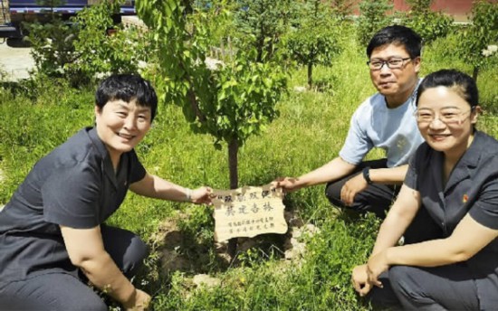山西高院訴訟服務(wù)中心黨員干警在清水溝村種下一棵棵杏樹(shù),同筑美麗鄉(xiāng)村。