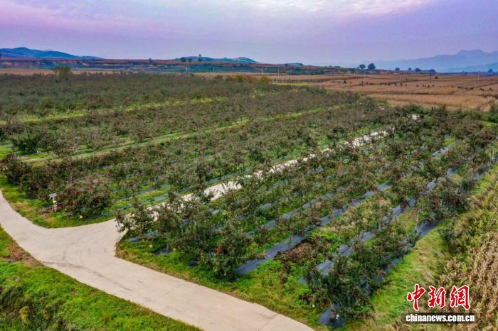 紅彤彤的蘋果如霞似火,為昔日荒山披上“紅妝”。 王晨 攝