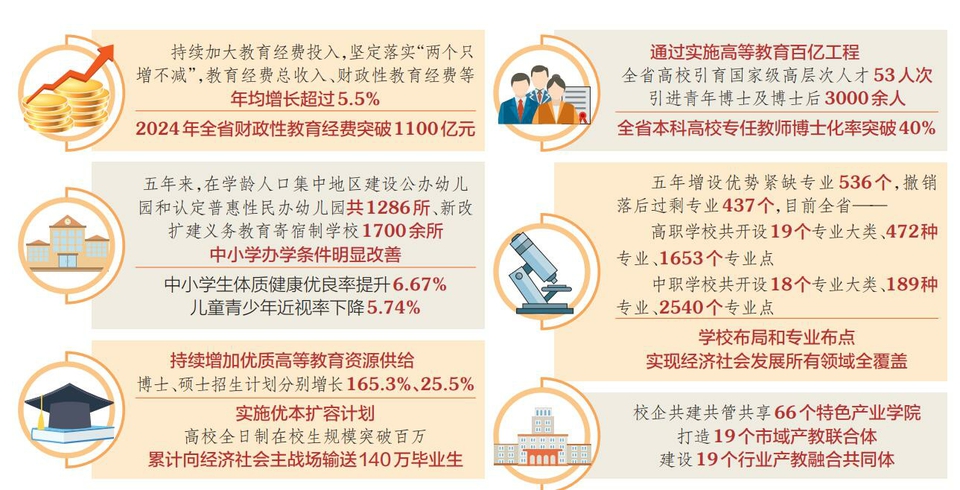 教育是國之大計、黨之大計,也是每個家庭的心頭事。“十四五”以來,在省委、省政府堅強領(lǐng)導下,全省教育系統(tǒng)深入貫徹落實習近平總書記關(guān)于教育的重要論述,全面貫徹黨的教育方針,堅定落實教育優(yōu)先發(fā)展戰(zhàn)略,有力推動“十四五”規(guī)劃各項指標任務(wù)全面完成,為“十五五”時期加快建設(shè)教育強省奠定了堅實基礎(chǔ)。