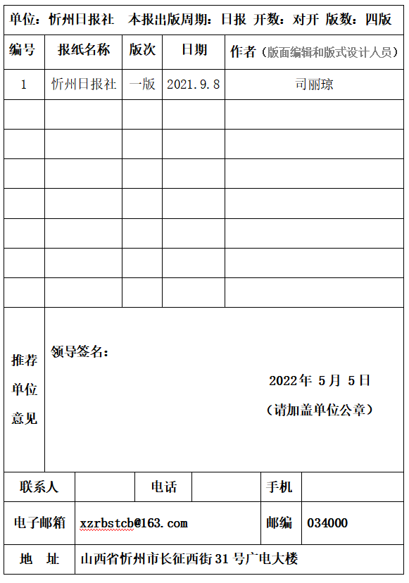 經(jīng)忻州日?qǐng)?bào)社編委會(huì)研究決定,以下作品擬推薦申評(píng)第三十一屆山西新聞獎(jiǎng),現(xiàn)予以公示。有反對(duì)意見(jiàn)者,請(qǐng)將反對(duì)意見(jiàn)書面報(bào)至統(tǒng)籌部。
