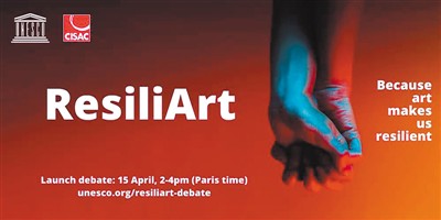 聯(lián)合國教科文組織“漫談堅韌藝術(shù)”線上討論的宣傳海報。此次討論的主題是“藝術(shù)家和創(chuàng)造力如何戰(zhàn)勝危機”。