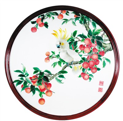 現(xiàn)代廣繡作品“紅荔鸚鵡”