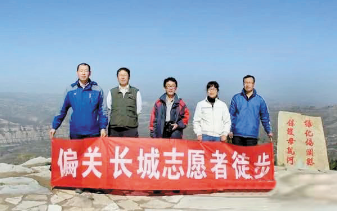 賀文(左一)與偏關(guān)長(zhǎng)城志愿者尋找黃河邊墻