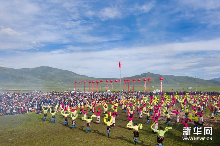8月6日,當地群眾在表演舞蹈《美麗的金馬色達》。8月6日至8日,四川甘孜山地文化旅游節(jié)系列活動之一的色達金馬文化節(jié)在四川省色達縣扎青塘草原舉辦。當地群眾身著節(jié)日盛裝載歌載舞、歡聚一堂,文藝表演、賽馬、傳統服飾展演、非遺展示等活動精彩紛呈。 近幾年,當地政府大力推動文旅、農旅、牧旅融合發(fā)展,全域旅游豐富多彩,成為當地脫貧奔小康的重要抓手。新華社記者 江宏景 攝
