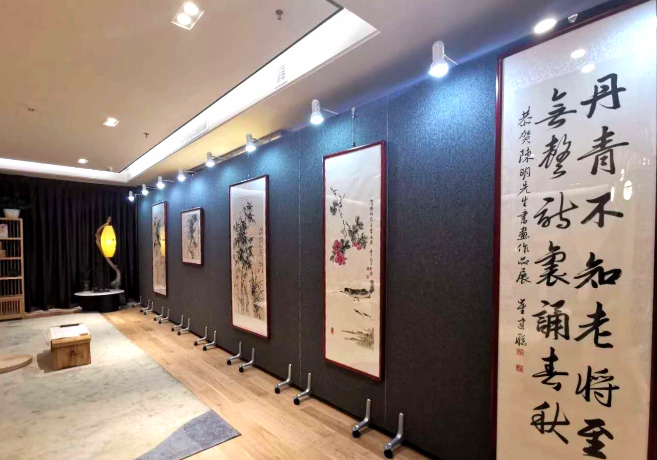 這便是近期在晉中市辰興頤郡美學中心舉辦的陳明書畫作品展。布展別具一格,作品精美大氣,共展出了我省書畫藝術家陳明先生的20多幅字畫,他的蘭竹繪畫和書法作品清新、俊逸、淡雅、高古,讓參觀者贊不絕口。