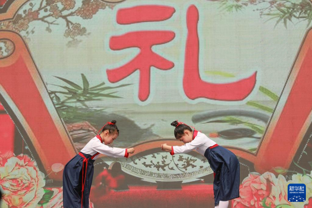 4月29日,小朋友在葉縣漢服文化節(jié)上表演。