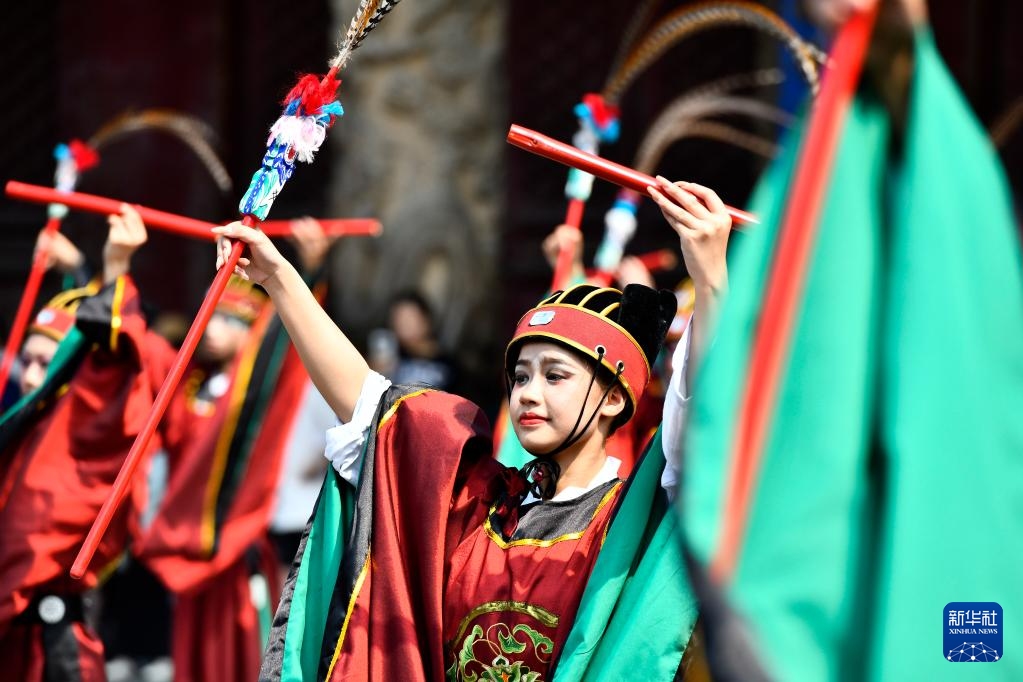 當日,世界互聯(lián)網(wǎng)大會數(shù)字文明尼山對話期間,曲阜孔廟再現(xiàn)開城、開廟儀式,并舉辦中華優(yōu)秀傳統(tǒng)文化展演,為中外與會嘉賓和游客呈現(xiàn)了一道文化大餐。新華社記者 郭緒雷 攝