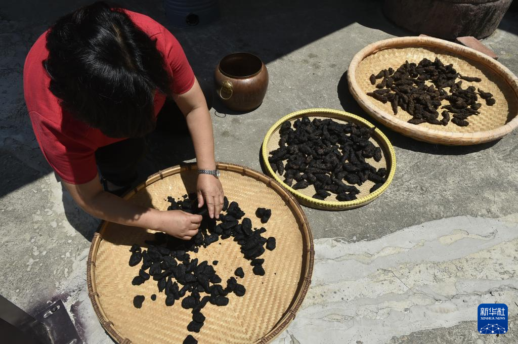8月4日,在禹州中醫(yī)藥文化技藝傳習(xí)館,非遺項(xiàng)目“禹州中藥加工炮制技藝”代表性傳承人朱改蓮(右)展示中藥材“九蒸九曬”加工技藝。