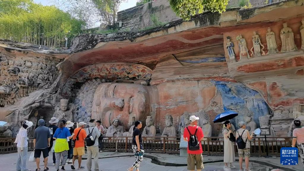 8月19日,游客在大足石刻寶頂山景區(qū)參觀。新華社記者楊湛菲攝