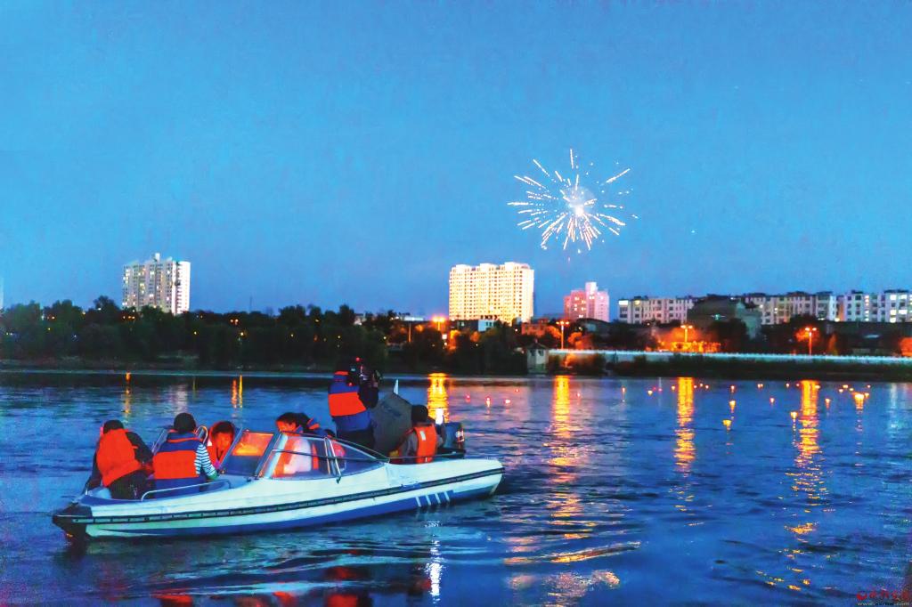 夜幕降臨,一盞盞寄予了人們美好祈愿的蓮花燈被緩緩放入黃河水中,星星點(diǎn)點(diǎn)的燈火在暗夜中飄向遠(yuǎn)處。一時間,河中水映燈影,燈耀波光,河面上忽明忽滅的河燈與空中的焰火交相輝映,寄托了人們美好的愿望,傳遞著延續(xù)數(shù)百年的祝福。