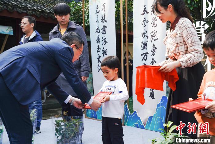 “認(rèn)領(lǐng)一顆桂花樹苗”證書頒發(fā)現(xiàn)場。 西湖街道 供圖